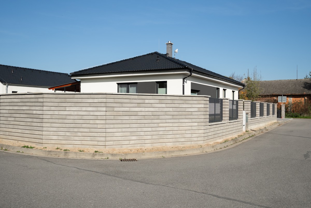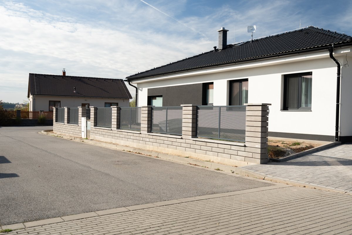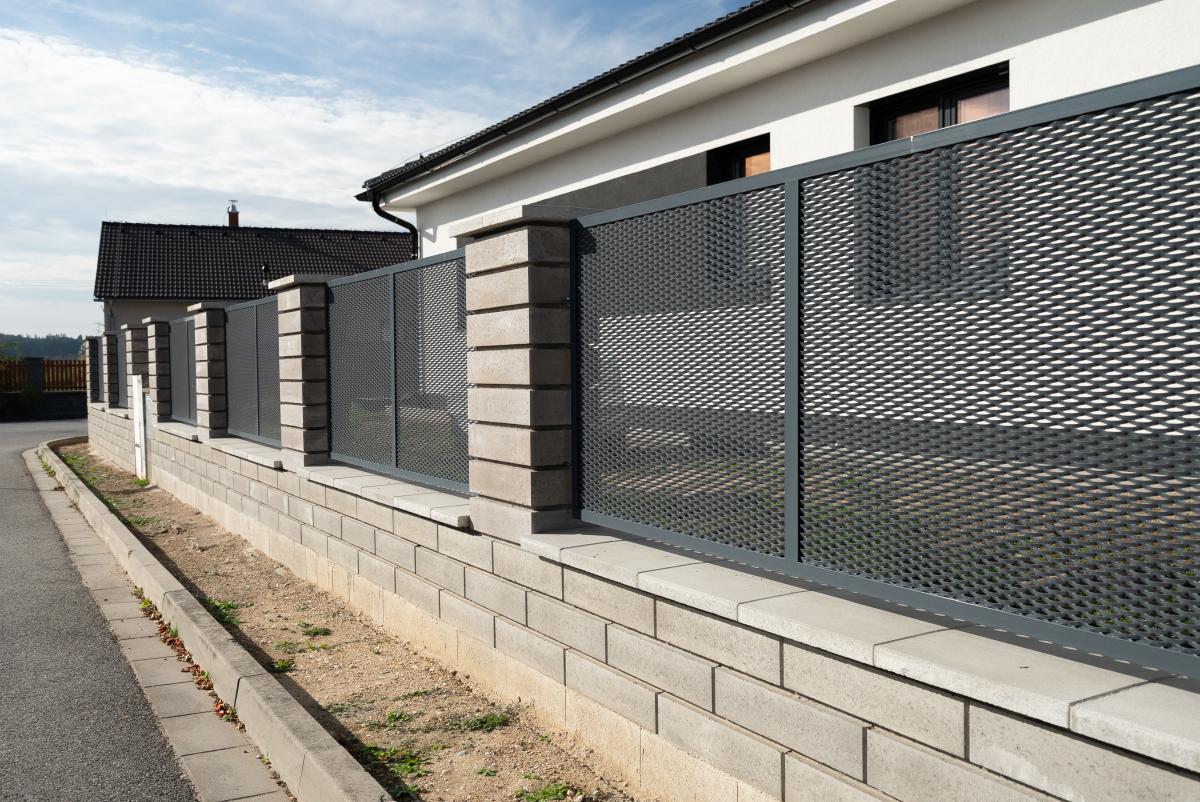 Kombinovaný plot z cihel a tahokovu